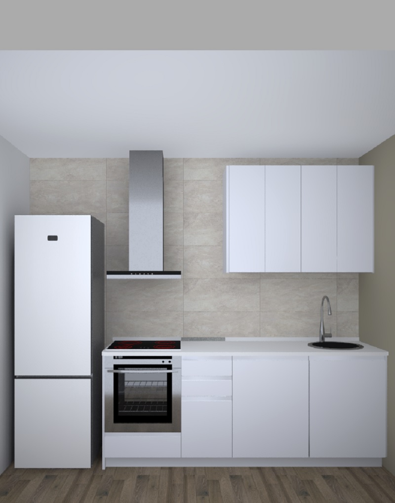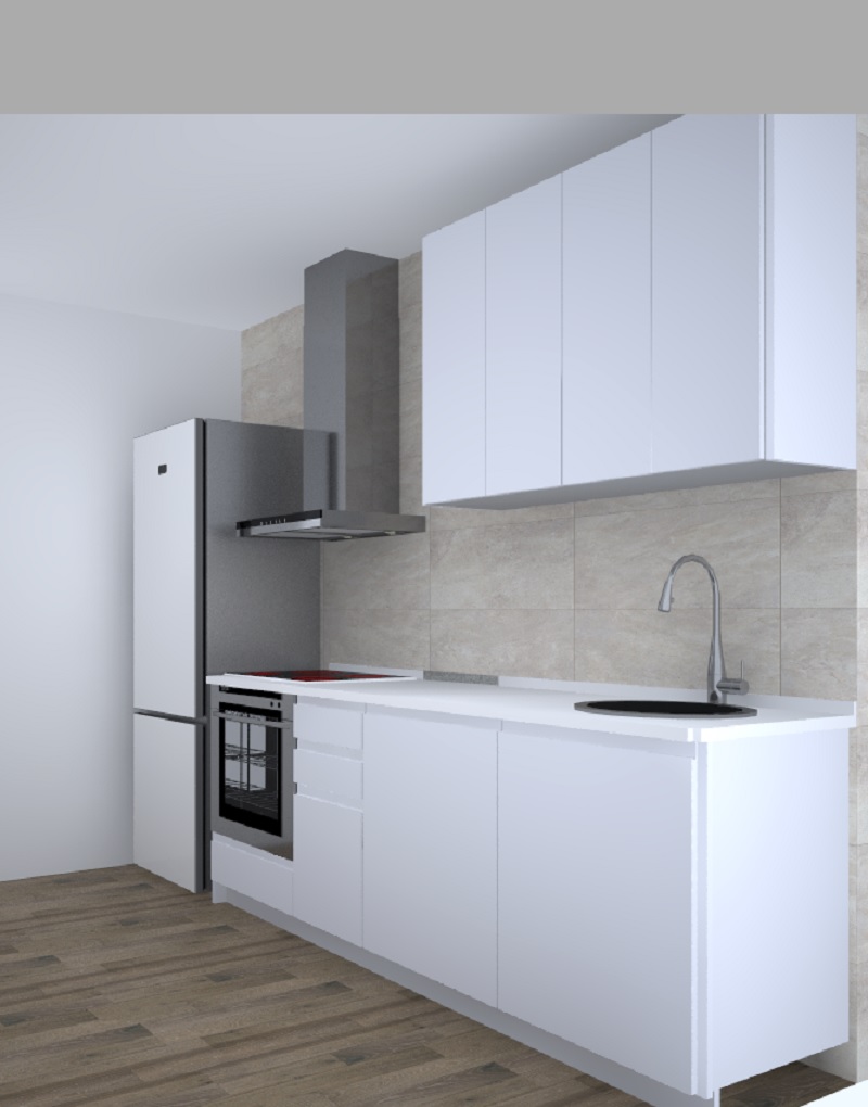 Frente de cocina 224 de ancho con lo básico para cocinar. Muebles bajos de 90 de altura para horno, placa, cajonera y fregadero con posibilidad de poner lavavajillas integrado. Muebles altos de 70 de altura. Para instalar desde una cocina pequeña y alargada, una mas ancha con mesa de cocina, hasta añadirle una isla dependiendo de nuestro espacio. Encimera no incluida.