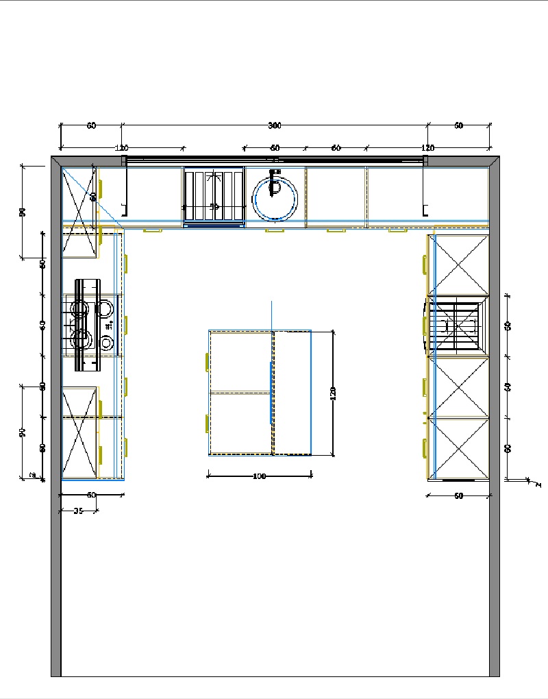 .Incluye 1 Costado de 90 h x 60 a cms. + 4 Costados 90 h x 35 a cms. + 1 Costado 240 h x 60 a cms. + 1 Costado 150 h x 60 a cms. + 2 Costados Isla 90 h x 100 a cms. + 1 Costado trasera isla 90 h x 120 a cms.