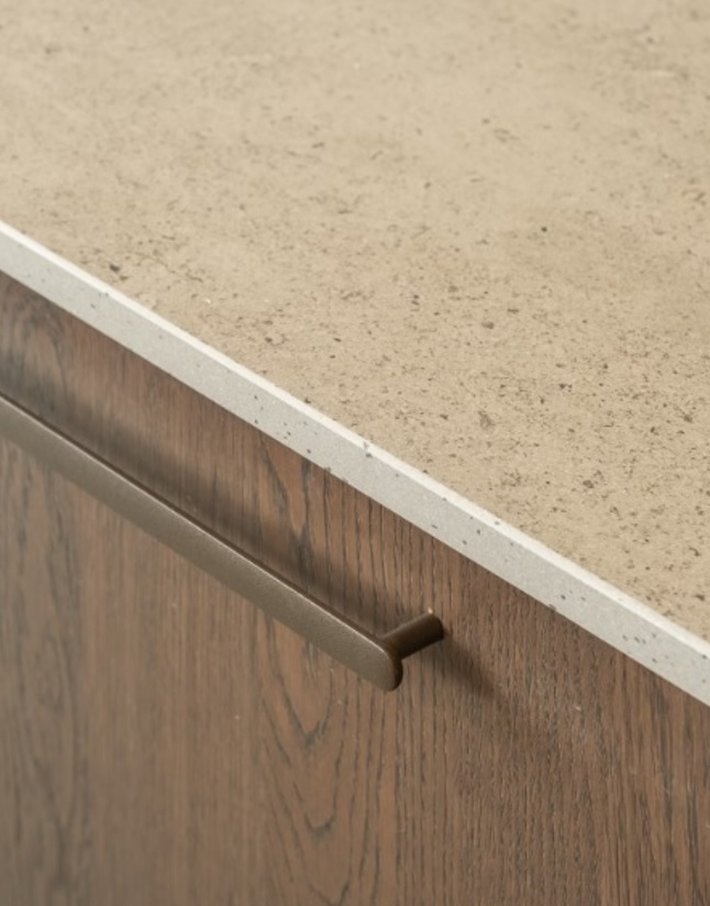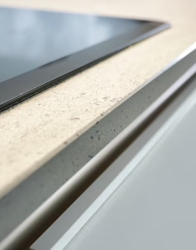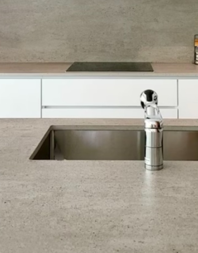 Metro lineal de encimera de piedra sinterizada o también llamada porcelánica Mod. KEON MATE de 12 mm de grosor, terminación en acabados grises hormigón. Muy combinable tanto para ambientes modernos como tradicionales.