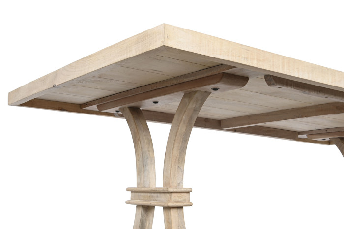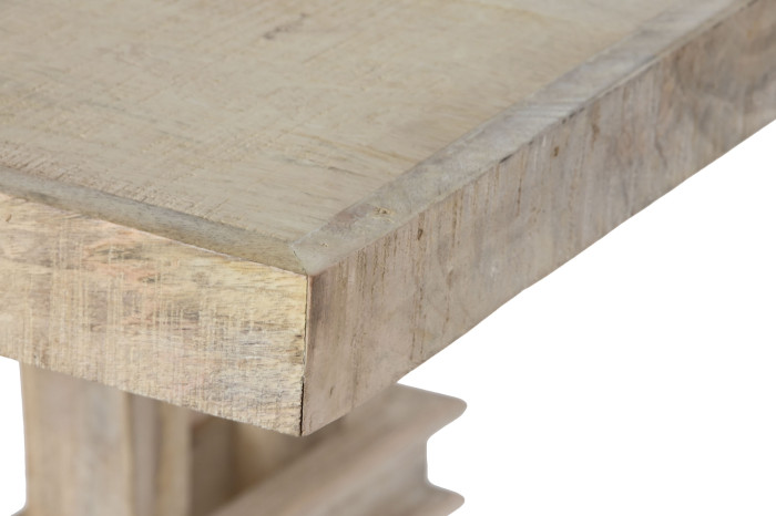 Mesa fija de cocina-salón con encimera en madera de mango, terminación en decapé. Para 8 o 10 personas. Diseño rústico, tradicional y actual.